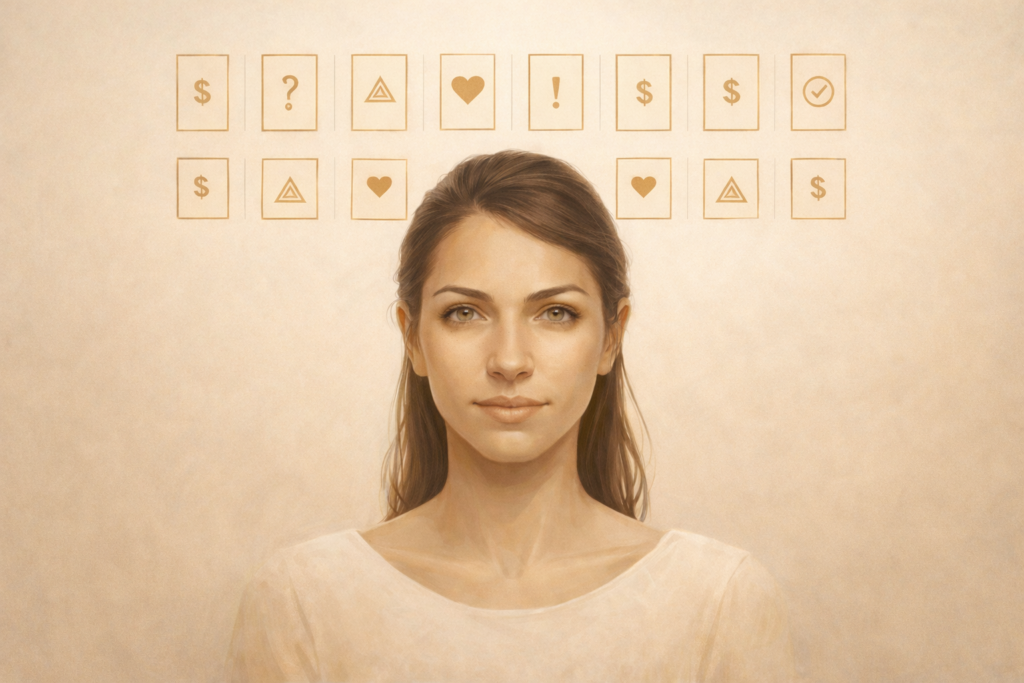 Deine Blockade muss nicht weg, sie will gesehen werden. Wir suchen nicht die eine richtige Entscheidung – wir üben, dass du deine Wahl halten kannst, auch wenn der Kopf nochmal dazwischenquatscht.